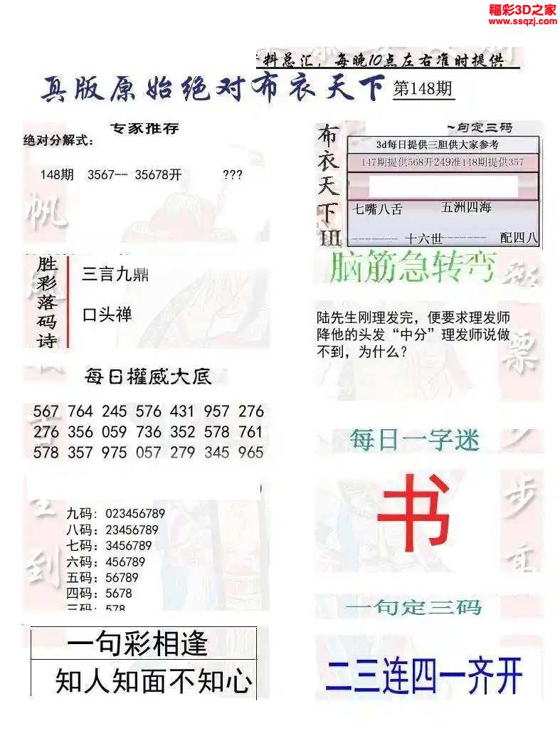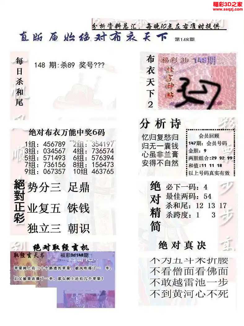 - 26103期福彩3d试机号后3D定胆诗谜