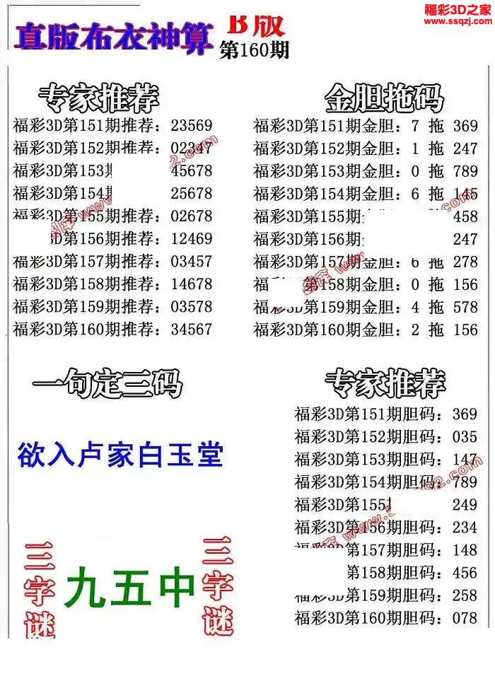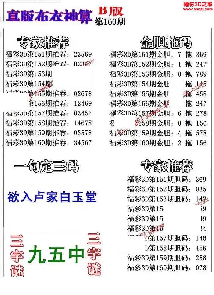 3d2024160期布衣神算AB版