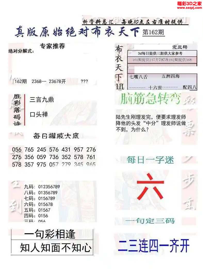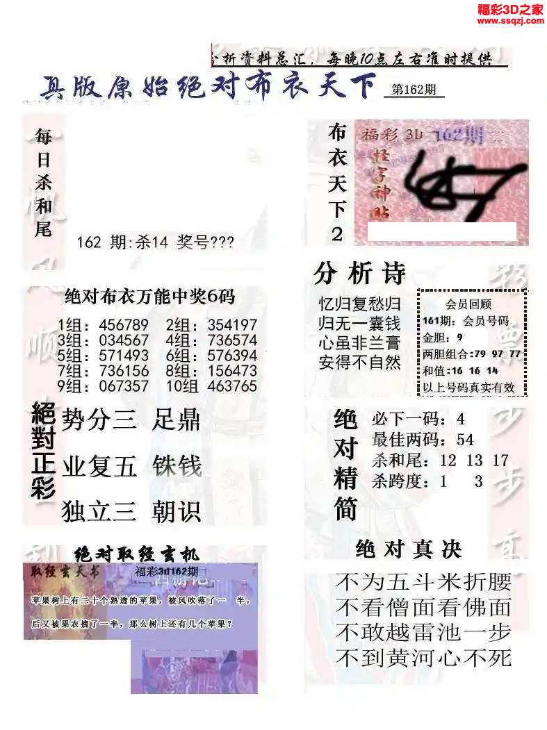 3d2024162期真精华布衣天下123456
