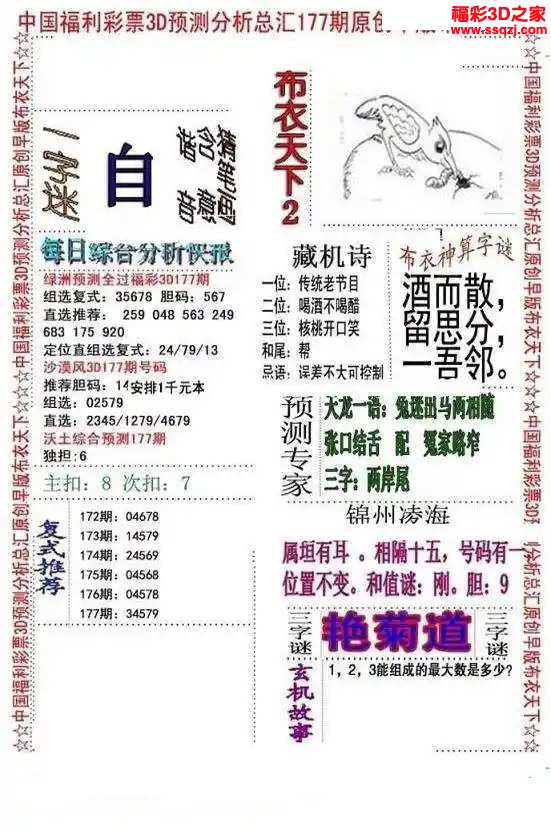 3d2024177期精华早版布衣12