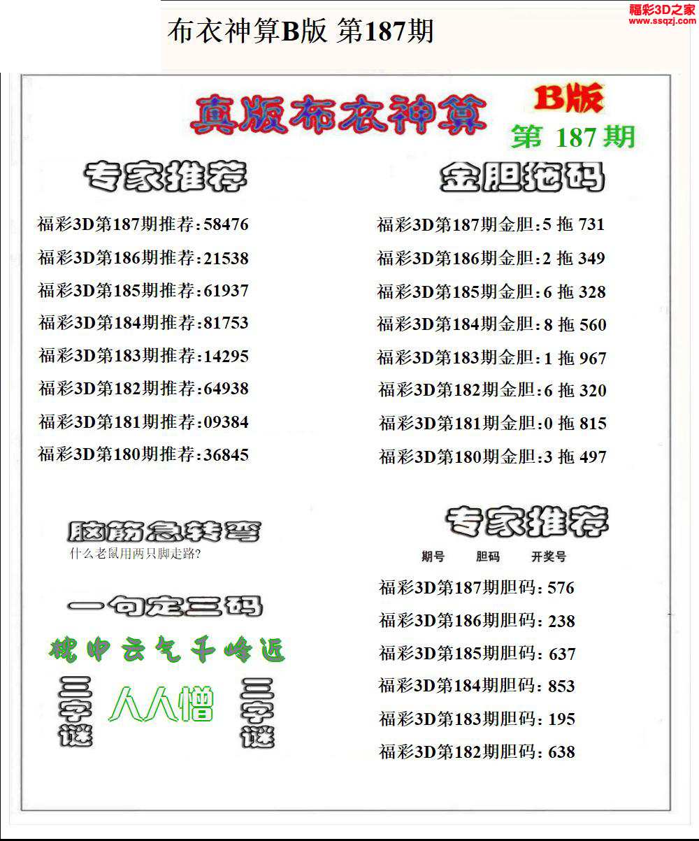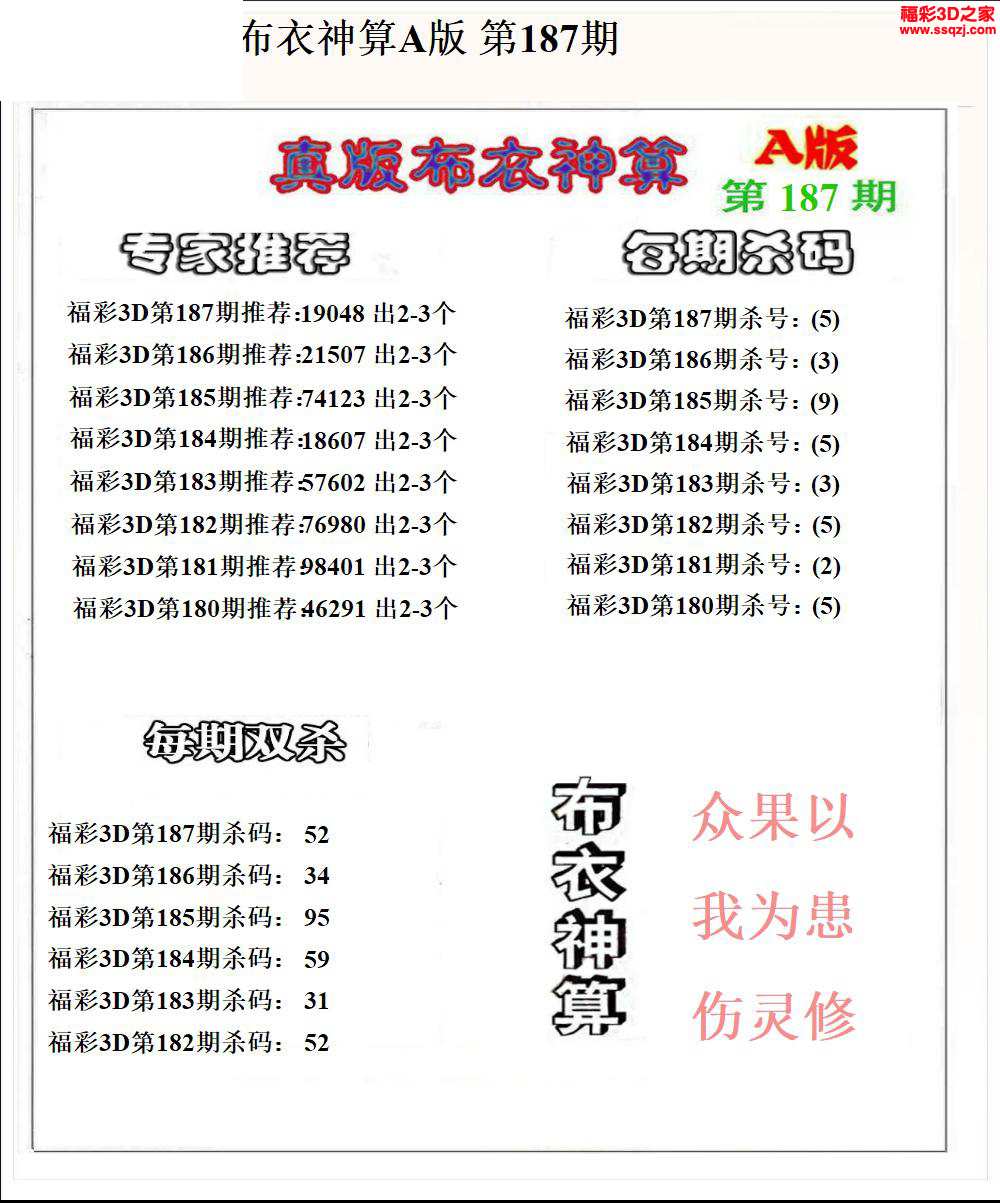 3d2024187期布衣神算AB版