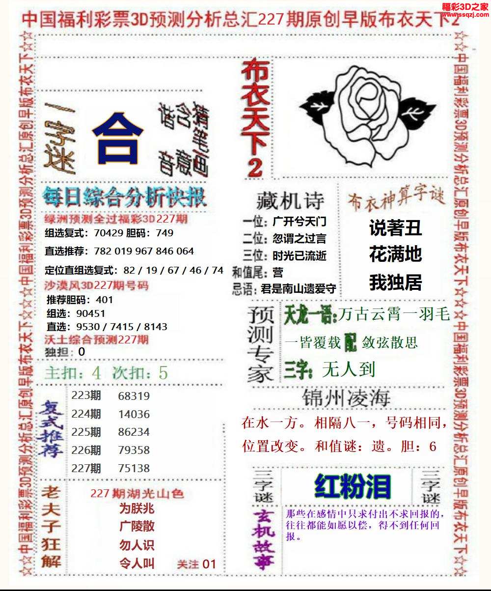 - [深情]26015期双色球杀红字谜