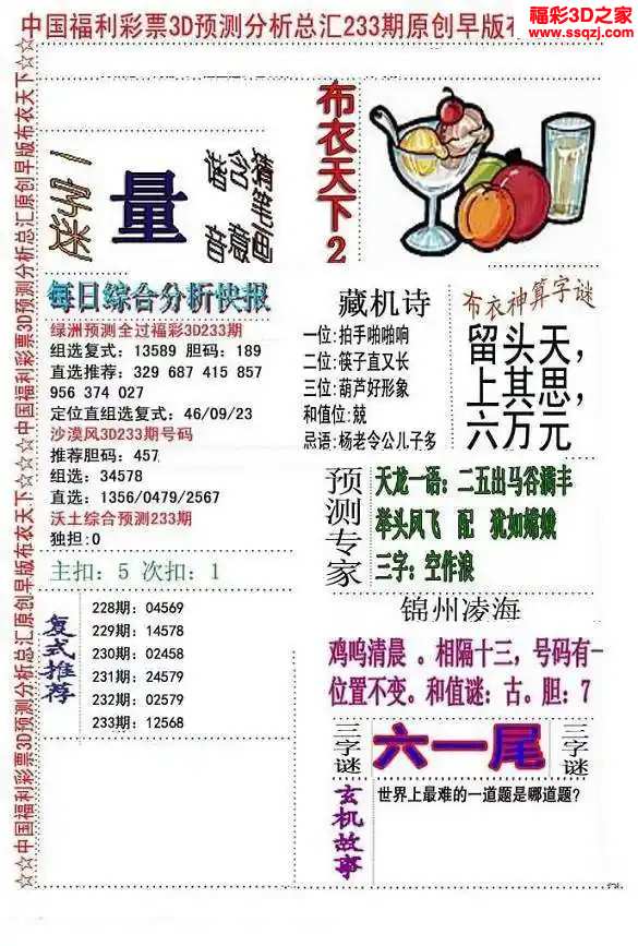 - 26017期[想不起]双色球杀两...