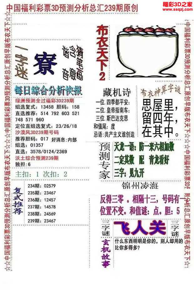 - 26040期福彩3d试机号后3d定胆诗谜