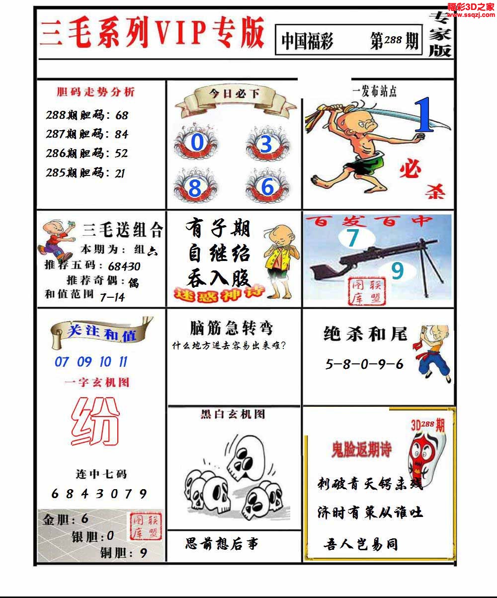 3d2022288期三毛图谜专家版