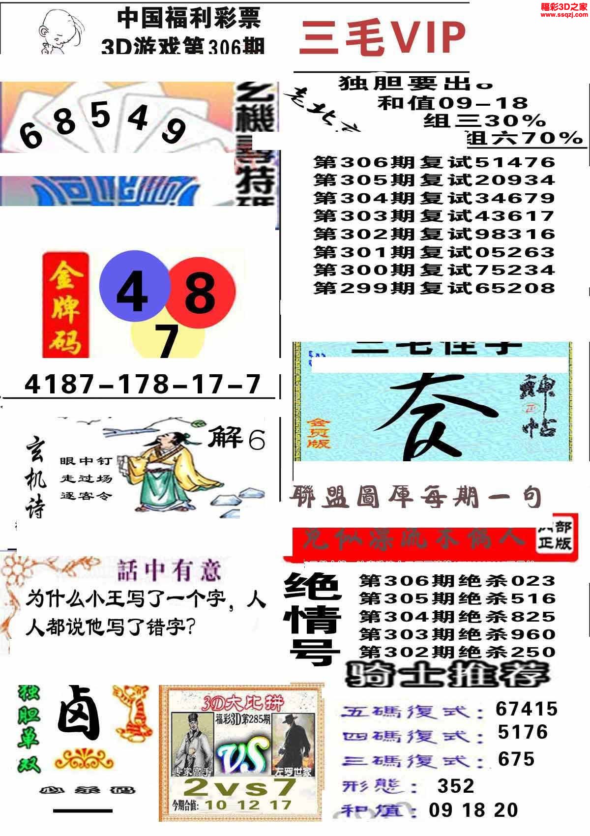 3d2022306期三毛图谜专家版