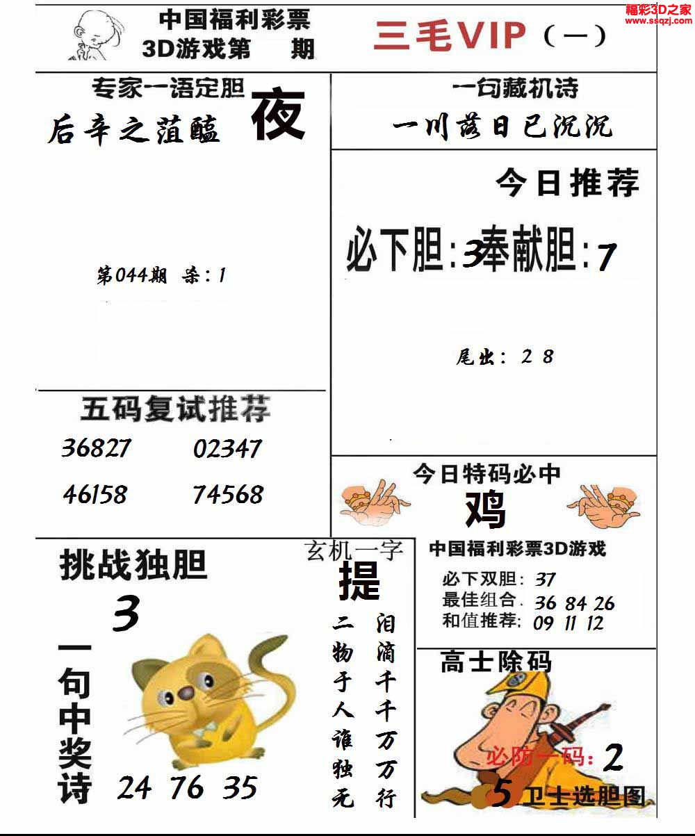 3D26063期[幸福达]独胆...