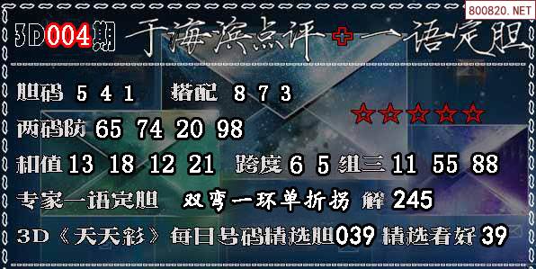 3D 《天天彩》每日号码精选胆039 精选看好39