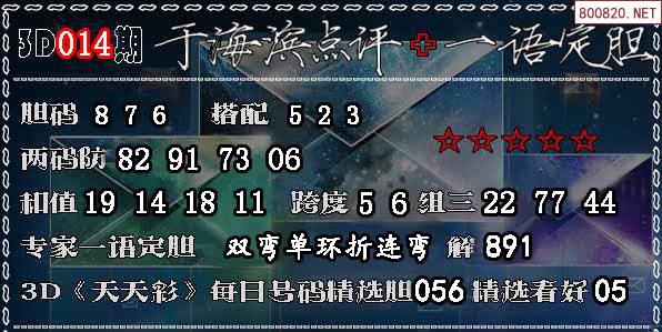 3D 《天天彩》每日号码精选胆056 精选看好05