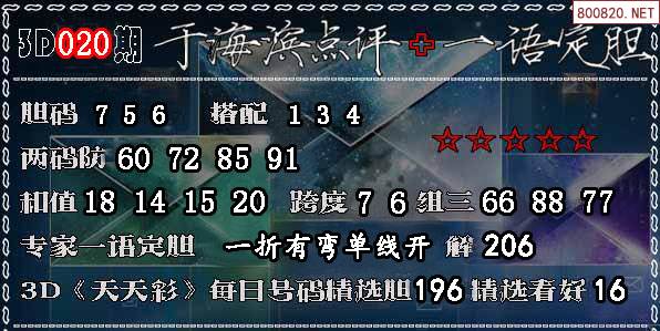 3D 《天天彩》每日号码精选胆196 精选看好16