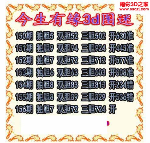 3d2022156期今生有缘三胆