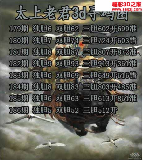 3d2022186期太上老君独胆图 连中
