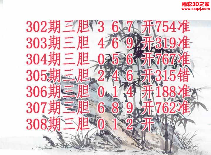 3d2024308期玩彩人胆码图 中9