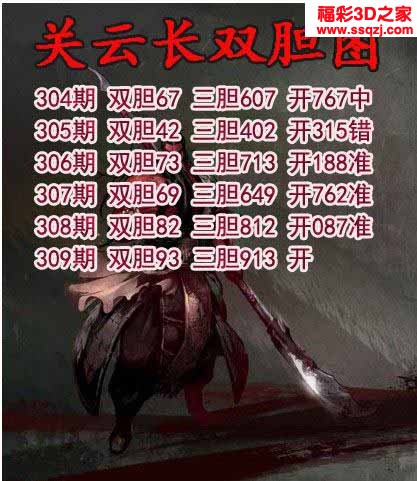 3d2022309期关公财神双胆三胆 3连中