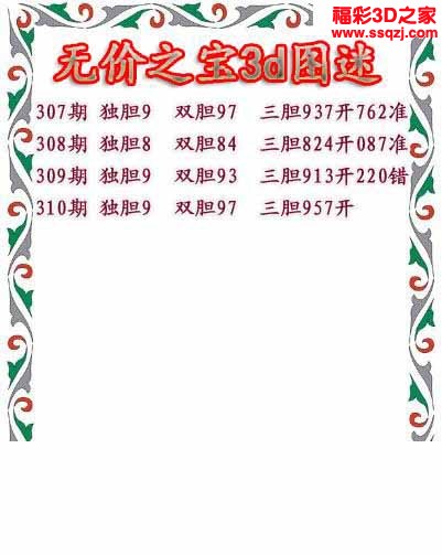 - 3d26037期[彩梦侠]稳定胆码...