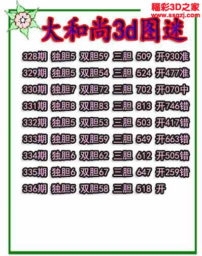 3d2022336期大和尚独胆