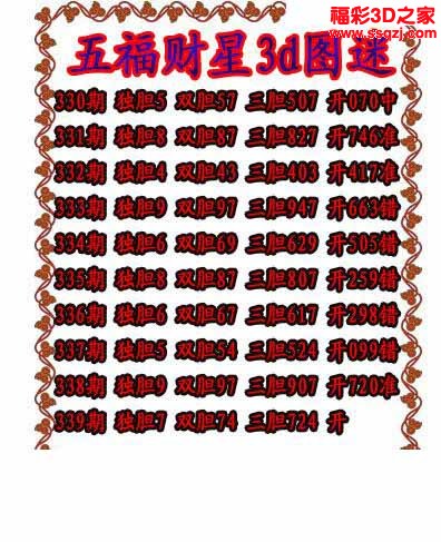 3d2022339期五福财星独胆图 中07