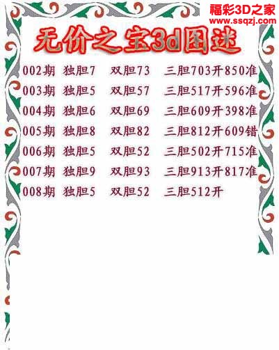 3d2023008期无价之宝独胆图 连中