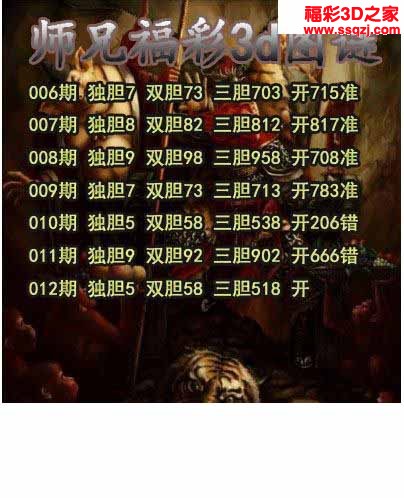 3d2024308期玩彩人胆码图 中9