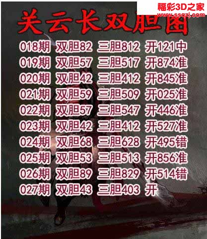 3d2023027期关云长双胆