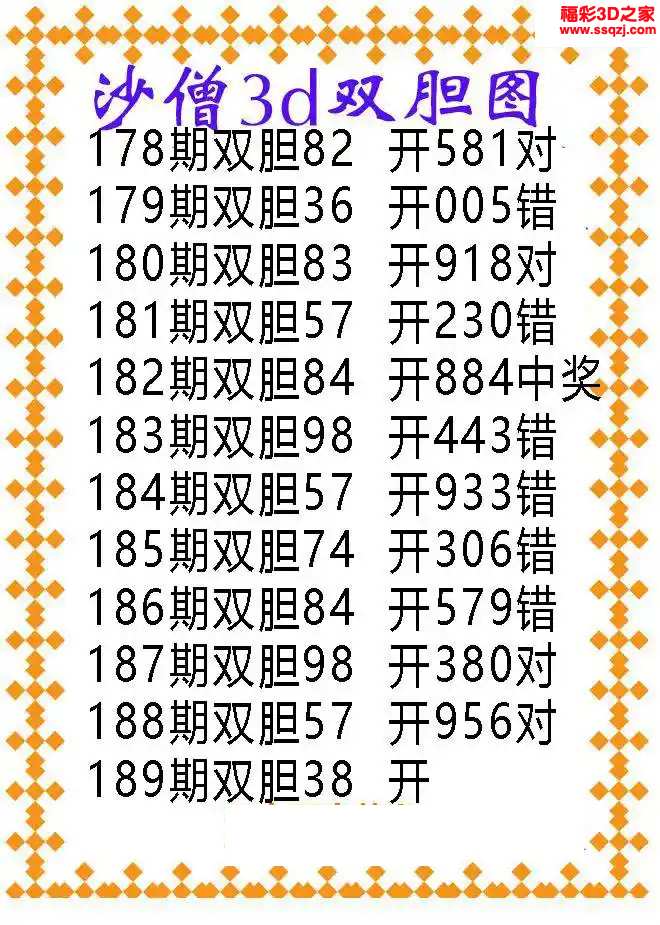 3d2024189期沙僧双胆图图谜 连中