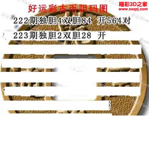 3d2024223期好运古币双胆 中4