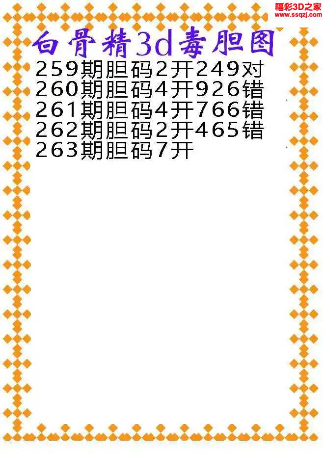 3d2024263期白骨精福彩胆码图
