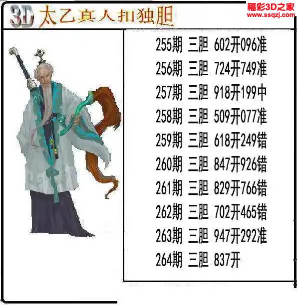3d2024264期太乙真人独胆 中9