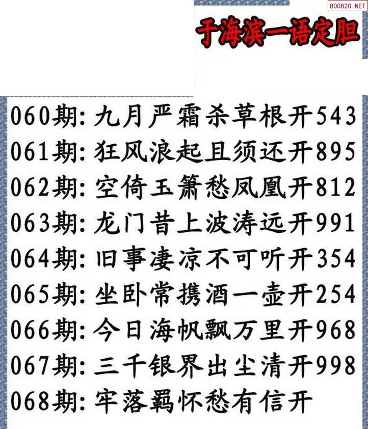 福彩3D22068期[于海滨]一语定胆