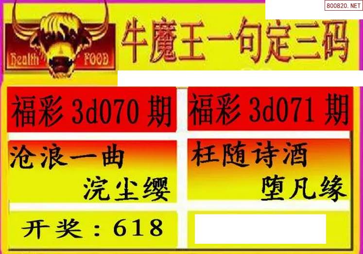 福彩3D第071期[牛魔王]中奖字谜