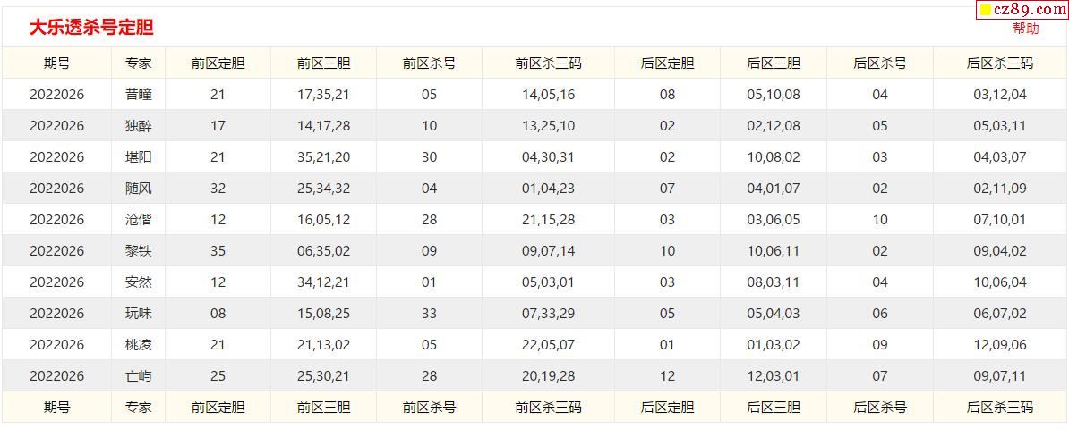大乐透026期 牛彩特邀专家前区后区杀号定胆图表