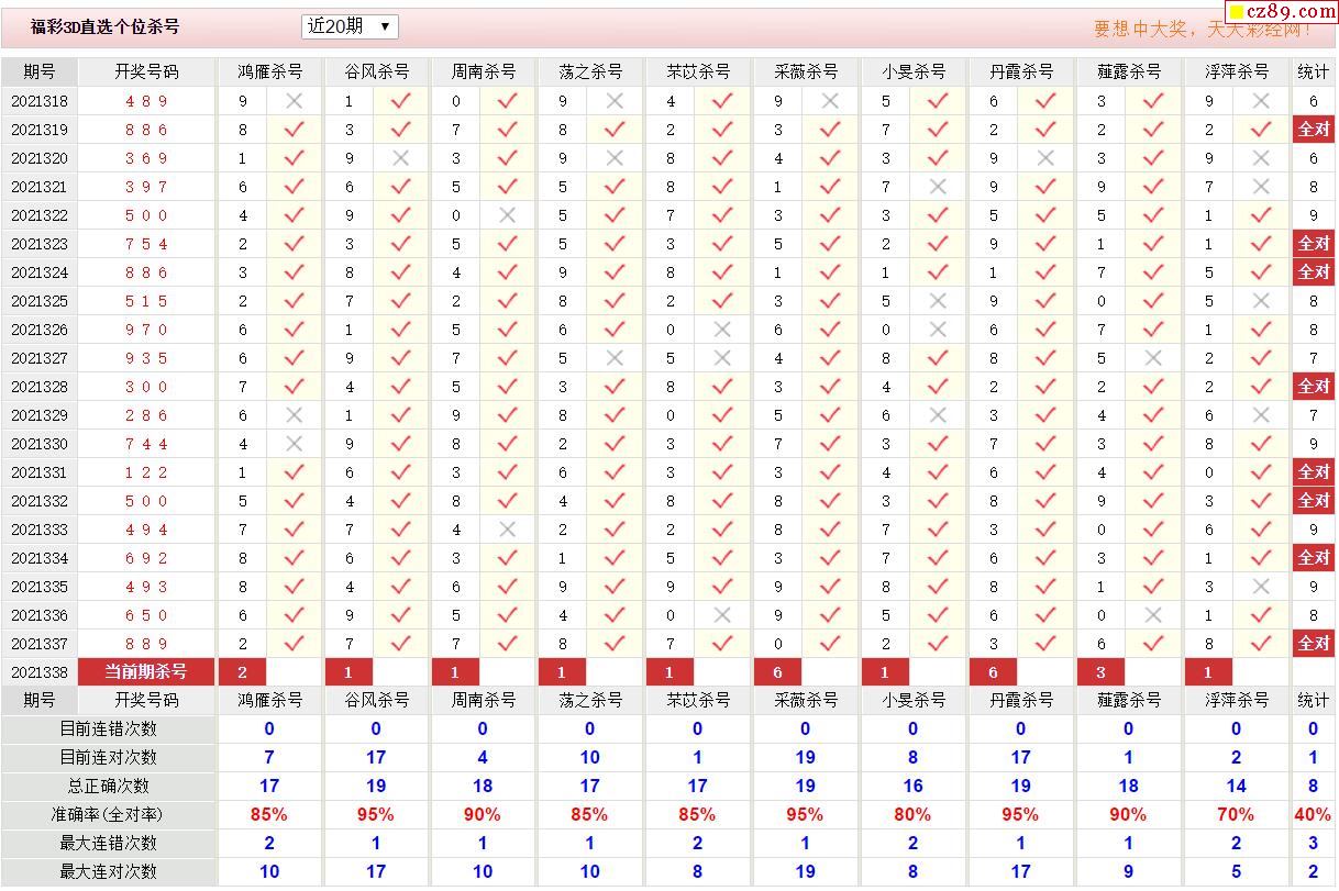 21年338期彩宝贝专家福彩3D杀号定码图表