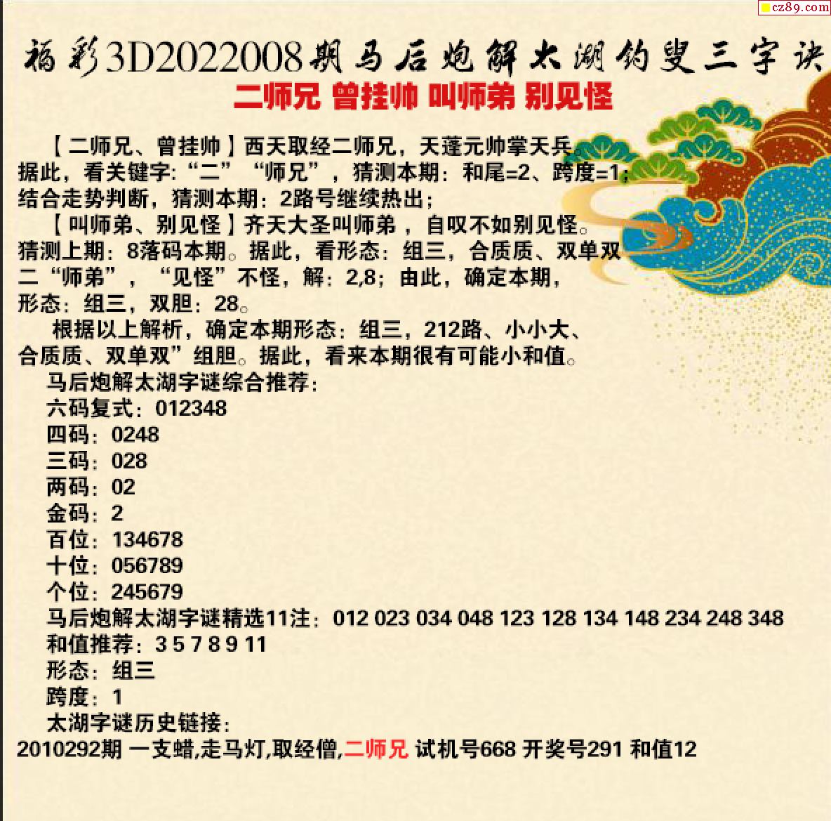 马后炮解22年008期3d太湖钓叟之 二师兄