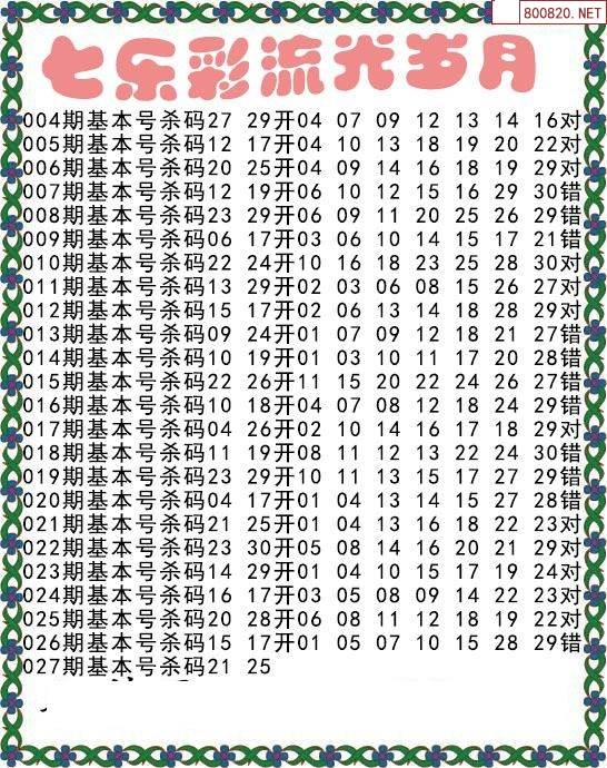 七乐彩2022027期流光岁月杀码图迷