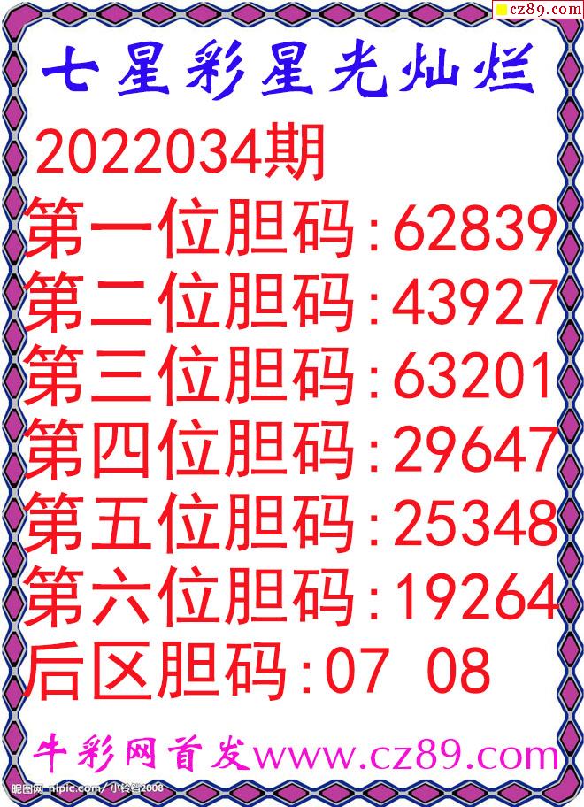 七星彩2022034期星光灿烂五码图谜