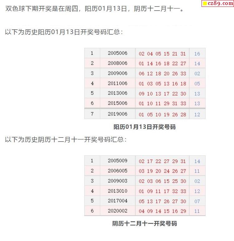 历史上的今天双色球01月13日开奖号码汇总