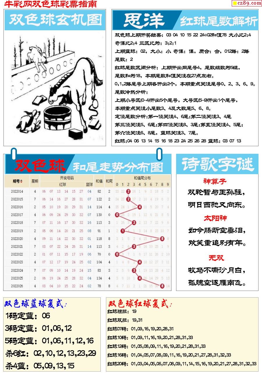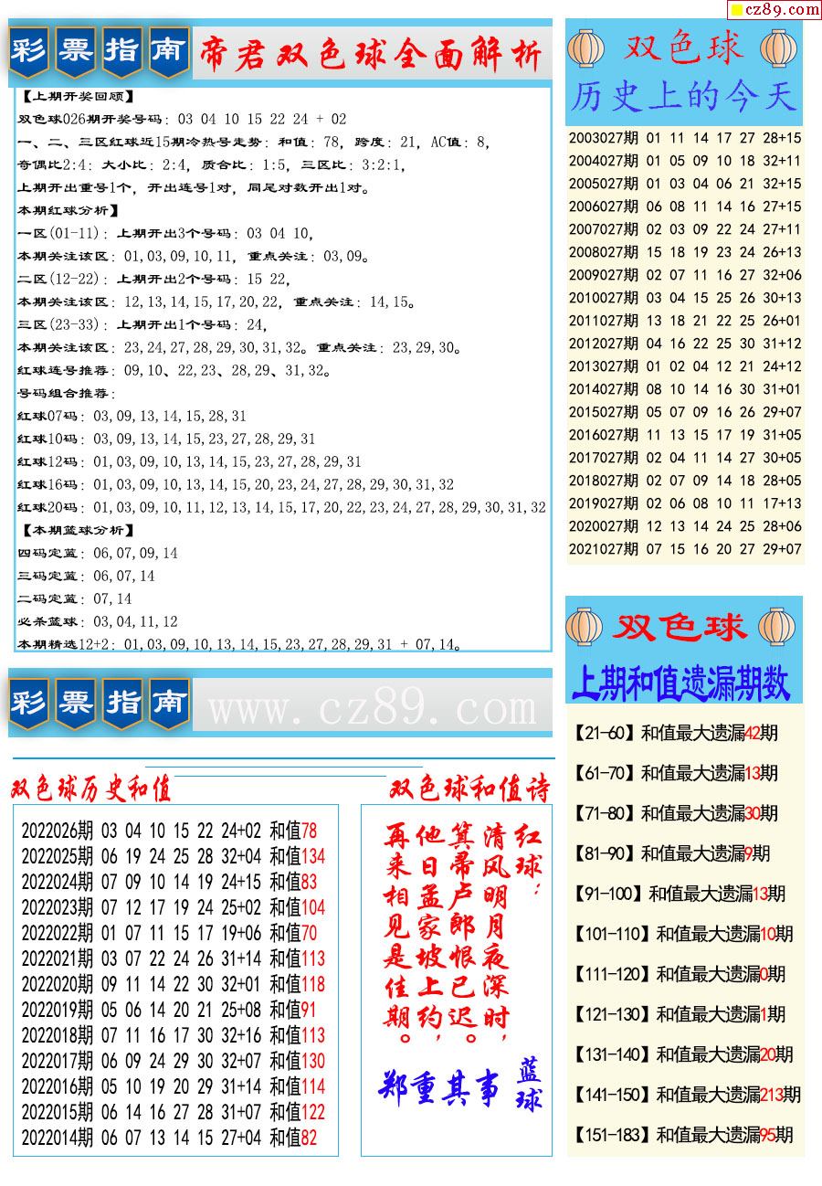 - 双色球26014期[蓝调]今日红...